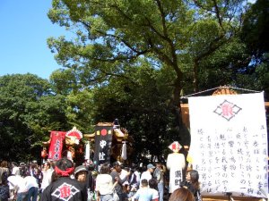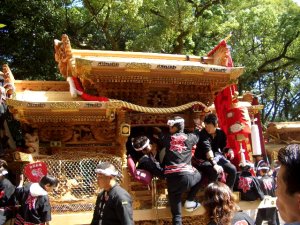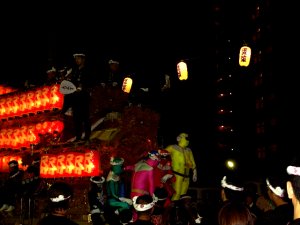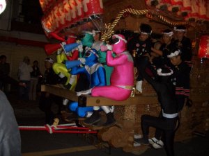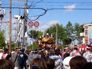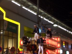 駅前でのパフォーマンス待ち(?)のだんじりが、